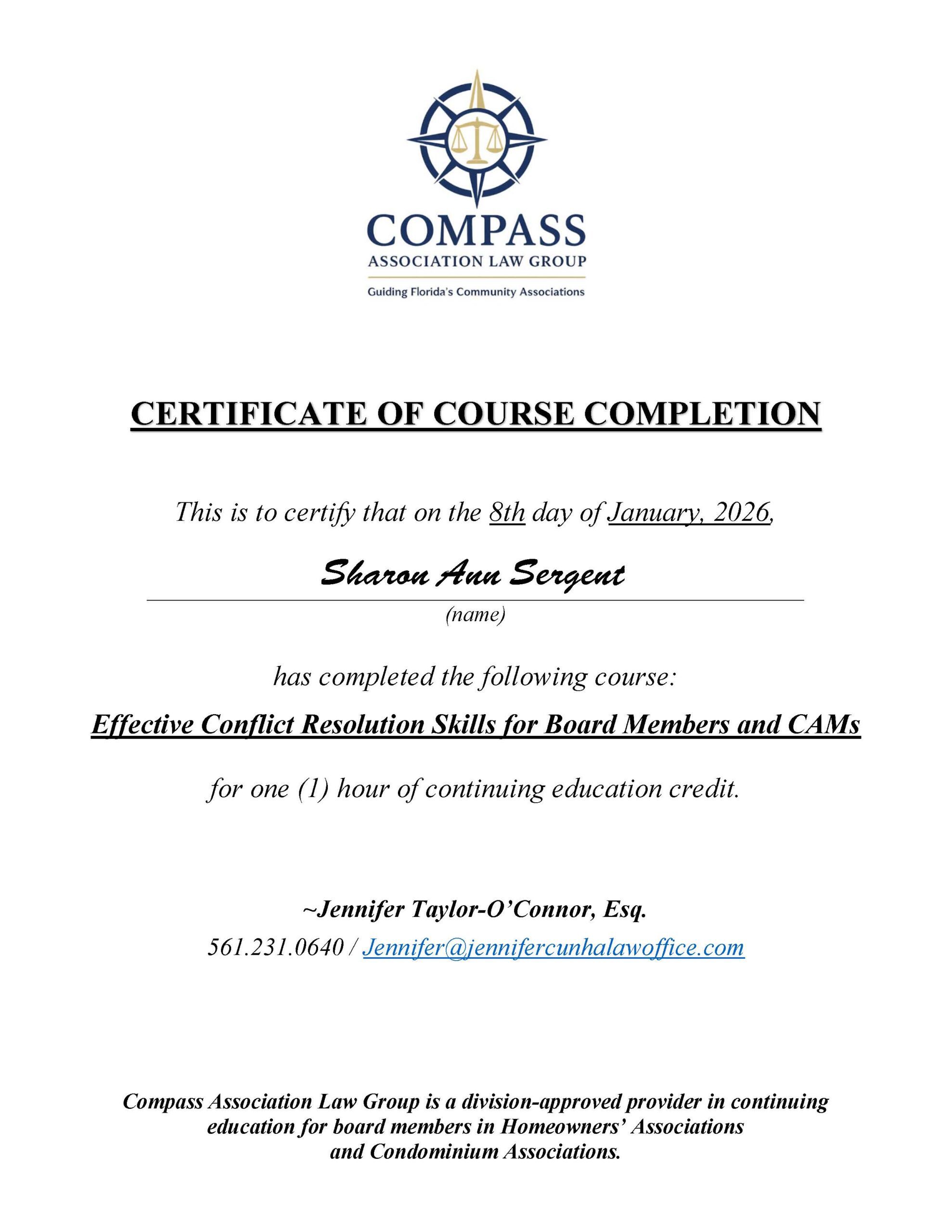 2017 – President – Bill Cousins; VP – Lisa Fowler; Secretary – Judy Englert; Treasurer – Sharon Ann Sergent; Director – Shirley Roberson