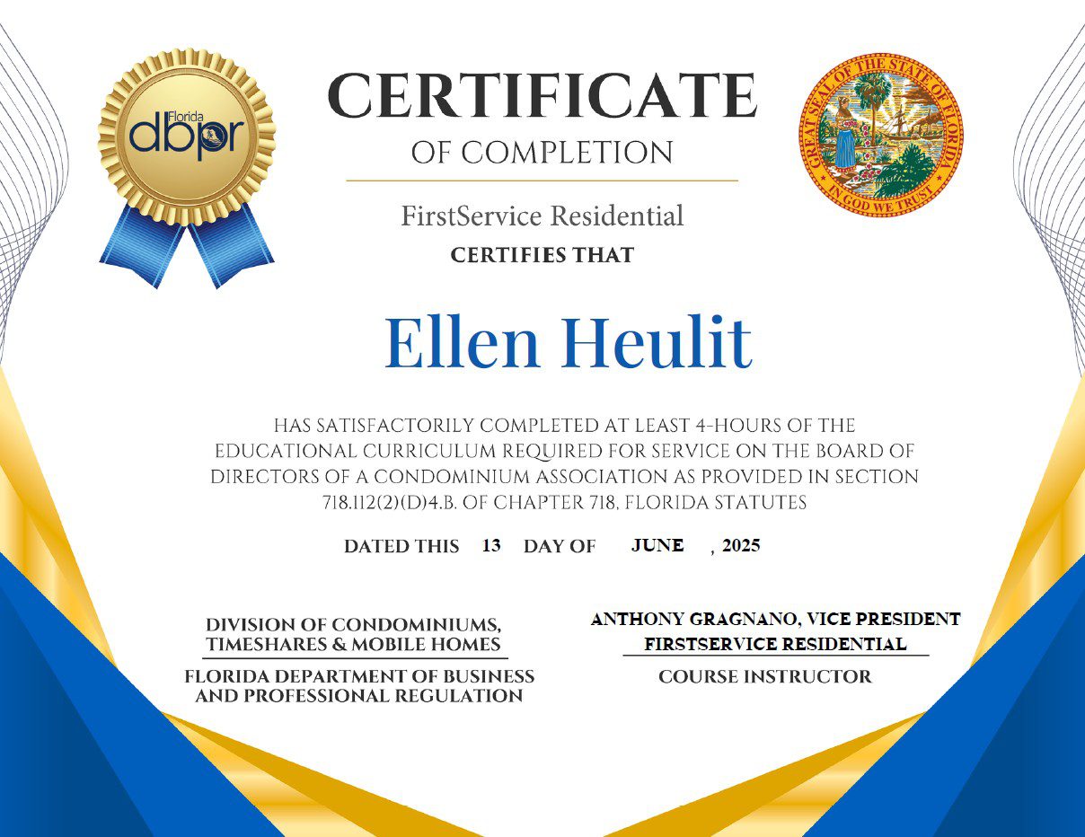 2019 – President – Barbara Vela; VP – Ellen Heulitt; Secretary – Cindy Davis; Treasurer – Bill Cousins; Director – Terrel Kirkland
